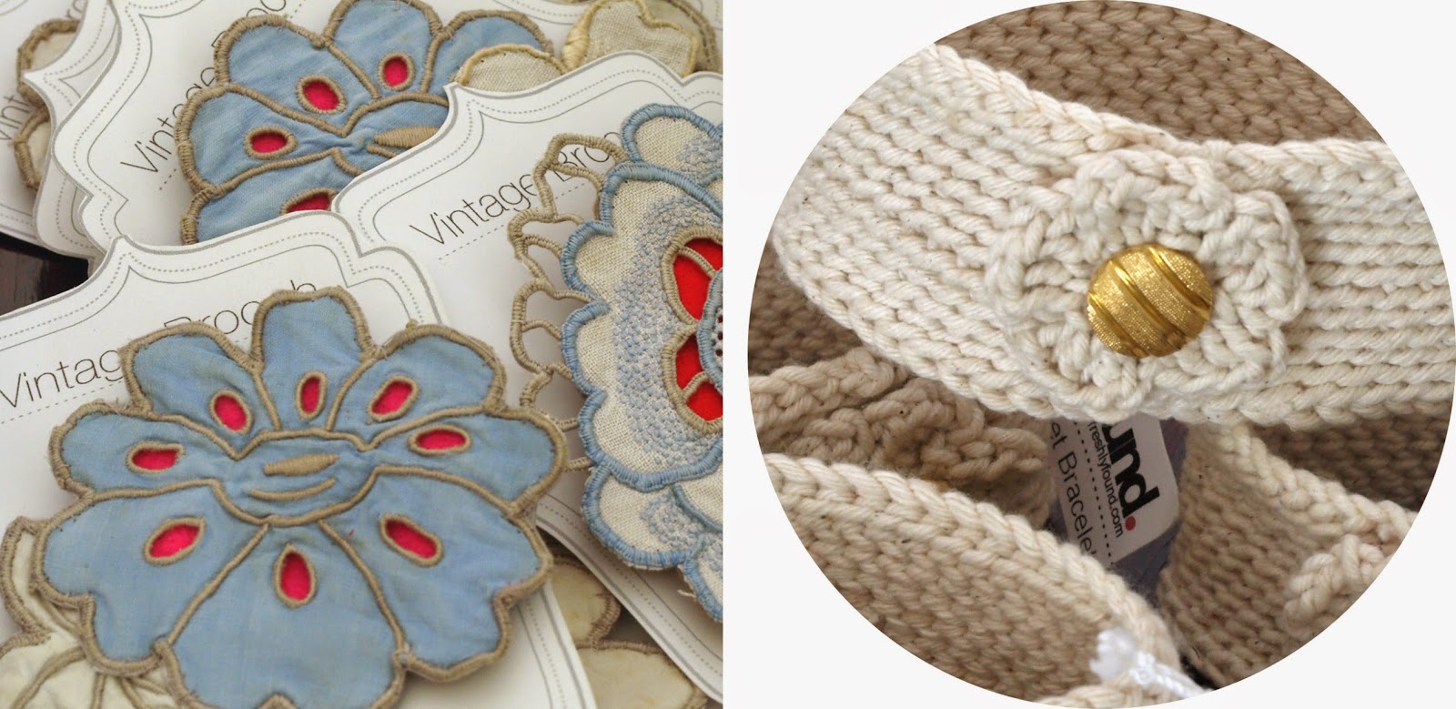| Vintage Embroidery Brooches and Solid Crochet Bracelets |