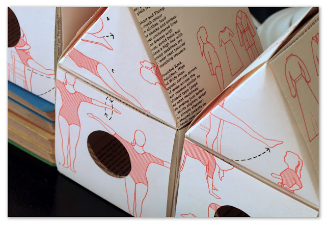 Paper bird houses – made from 21 identical sheets of vintage book paper.