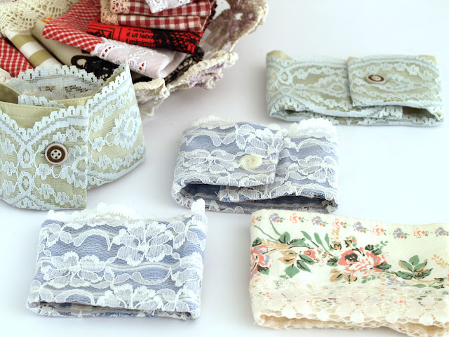 Usually she follows my instructions well, but just recently I took her some shirt cuffs and a box of lace and buttons and asked her to see what she could come up with.